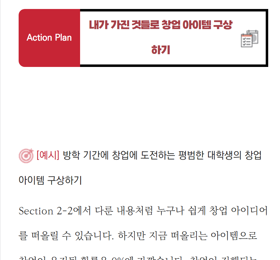 그리고, 각 섹션마다 "Action Plan" 을 두어 직접 해볼 수 있는 것을 제시하고 있습니다.